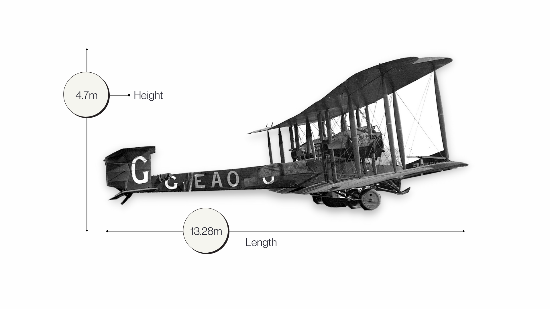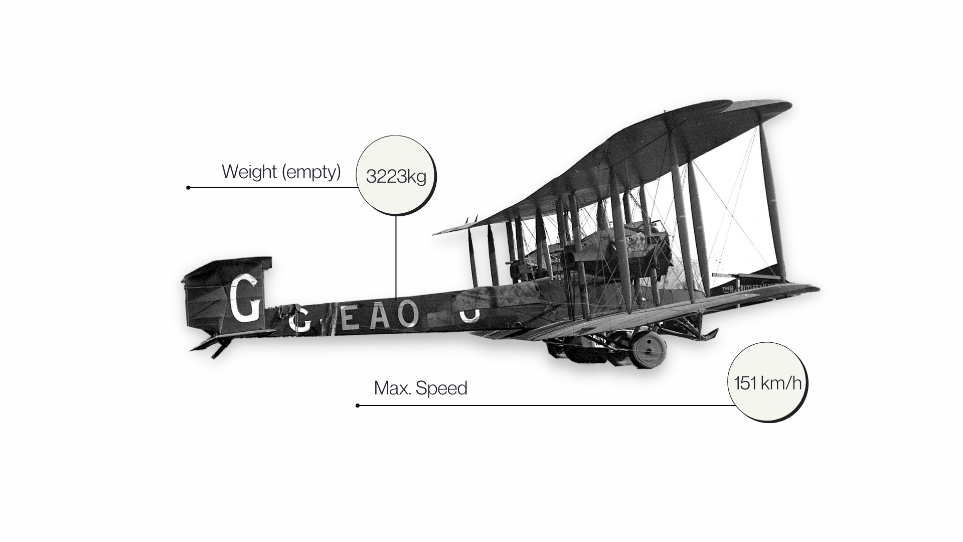 The Vickers Vimy’s crew left Hounslow, England, in poor weather. The team flew into a fierce snowstorm during their flight. It was so cold their goggles, flight suits, faces and cockpit froze. But, after six hours of flying, they landed in Lyon, France.