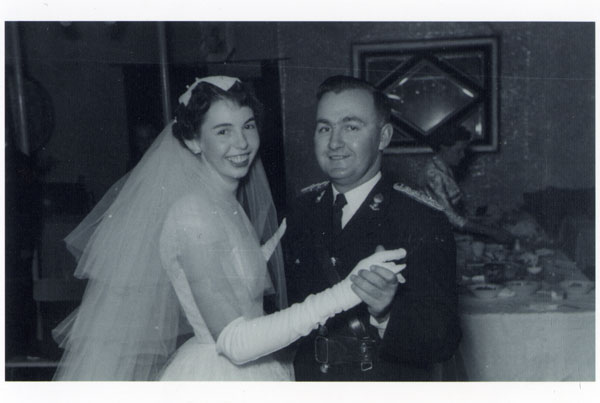Denise and Peter Badcoe on their wedding day, 26 May 1956