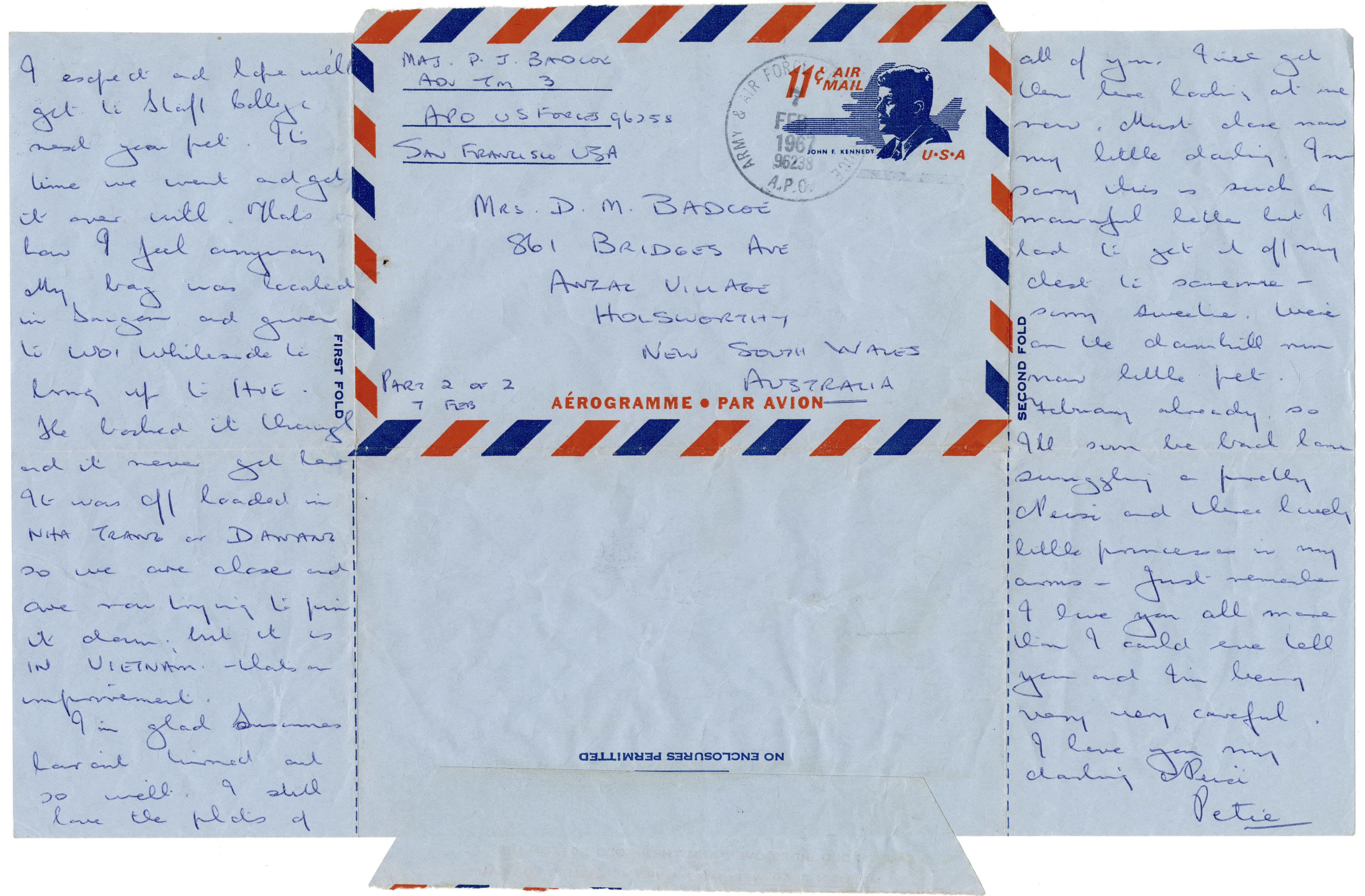 Letter from Major Badcoe to Denise Badcoe, 7 February 1967