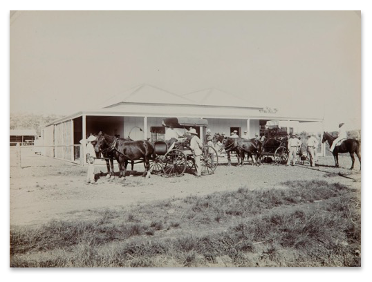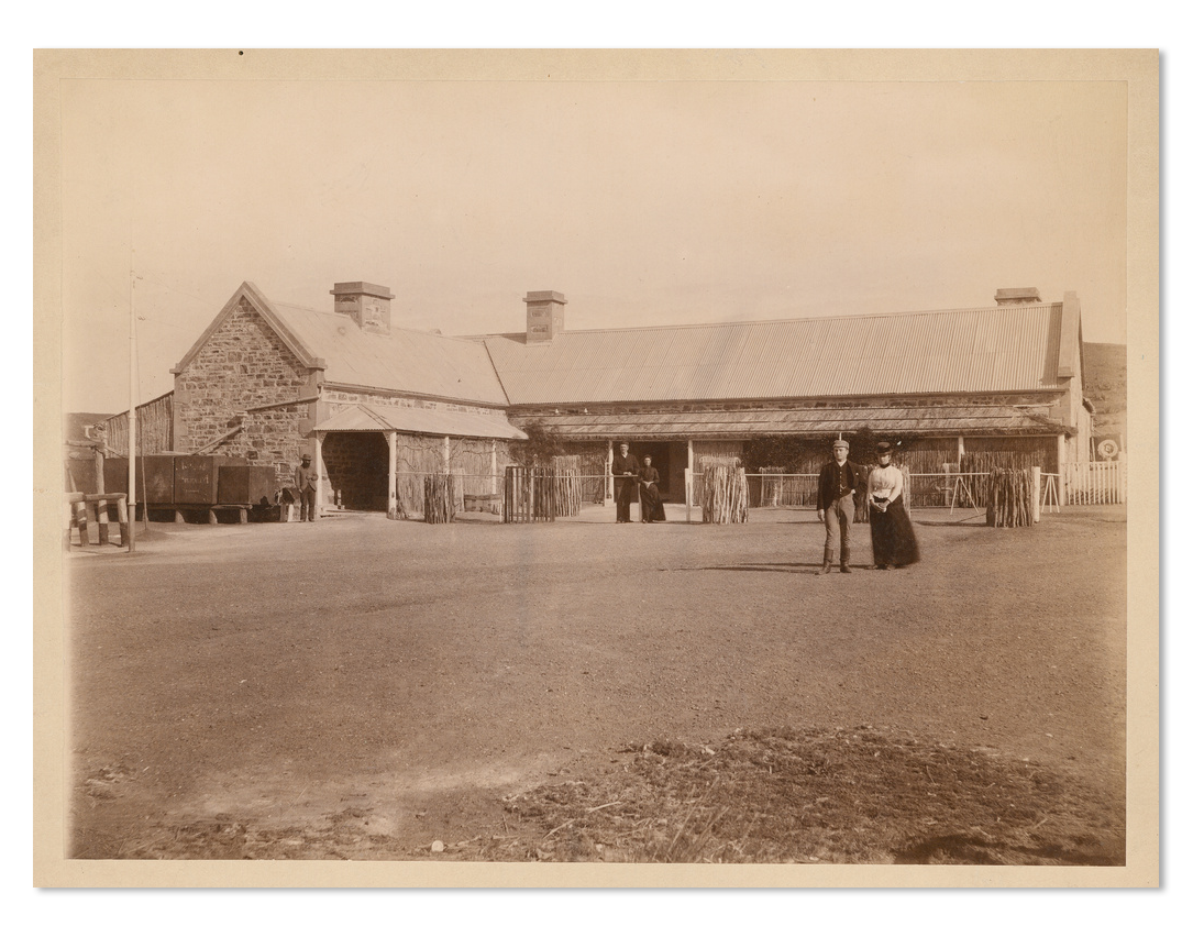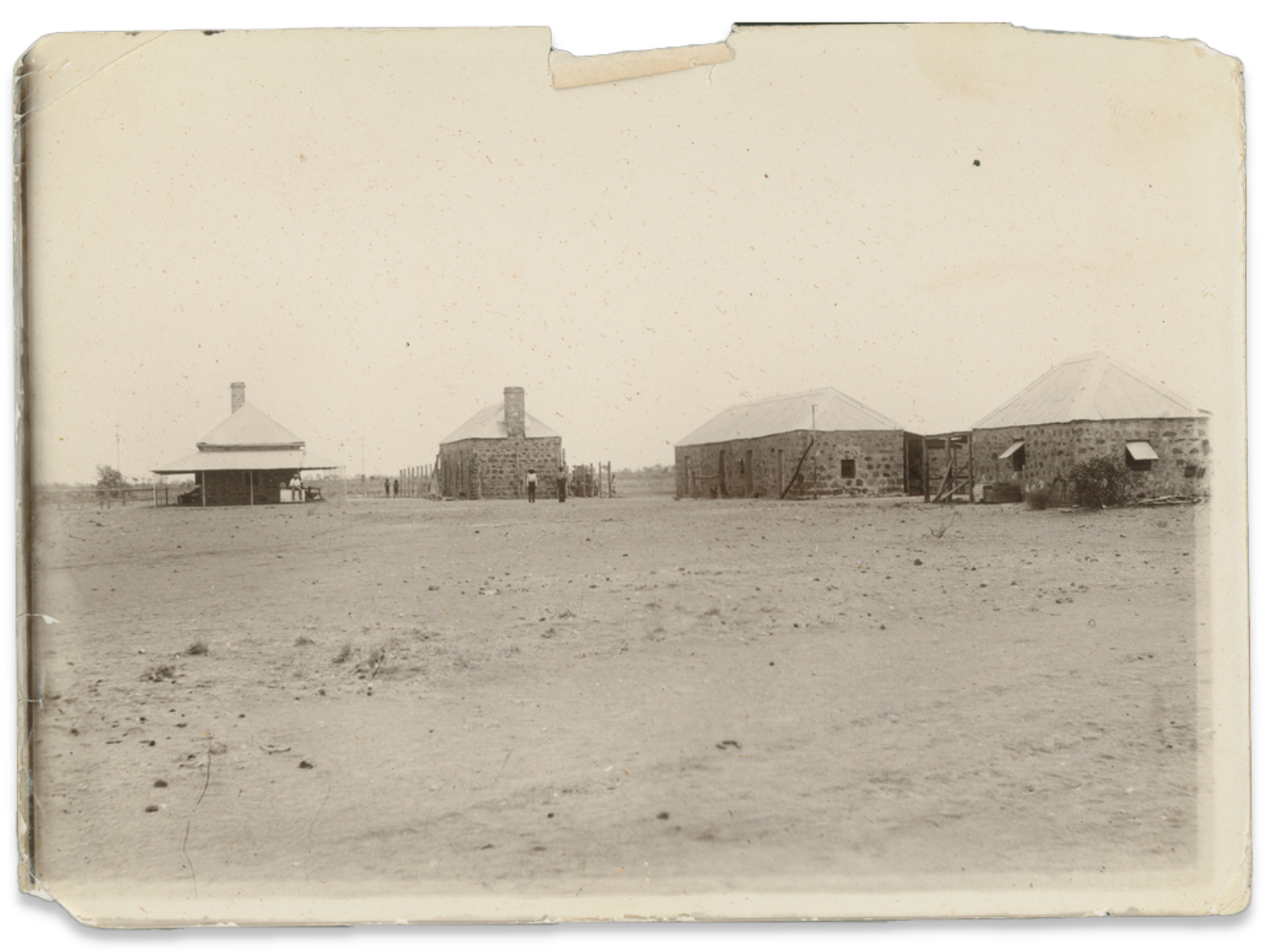 In April 1871, heavy rainfall flooded watercourses in Arrernte country, washing away wire from the Overland Telegraph and stalling work at what would become the Alice Springs Telegraph Station. The South Australian Register reported on 18 April 1872 that at Alice Springs ‘the grass has grown in abundance’, but Aboriginal people ‘keep out of sight’. No doubt, though, they observed the Europeans’ activity. The Alice Springs station layout was typical of the main repeater stations. The complex comprised the station-masters quarters, an office, men's hut, harness-room, transport store, blacksmith's shop and cart-shed, together with stockyard and well. The buildings have survived intact until the present day. The Arrernte camped close to the station, establishing a semi-permanent camp there from the 1870s until the 1920s.