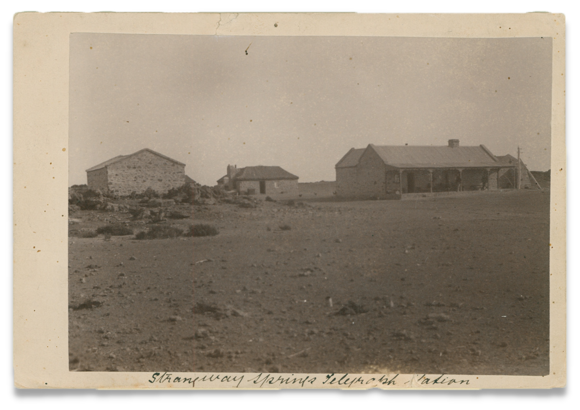The Strangways Springs Telegraph Station was established in Arabana country and, like Beltana, at the site of an existing pastoral station. Like their neighbours to the south, Arabana people had endured the combined impacts of pastoralism and drought by 1871 when the Overland Telegraph Line came through. By this time, the South Australian colonial government had established a network of rations depots through the colony’s northern districts (and elsewhere) to alleviate the impacts of colonisation and drought on Aboriginal communities. Providing quarterly issues of flour, sugar, tea and other minimum necessities, rations depots in the north were usually located at police stations, pastoral stations and telegraph repeater stations. Like other pastoral and repeater stations in the north, the Strangways Springs station played a complex role as a site of colonial dispossession, a rations depot and an Aboriginal gathering place.