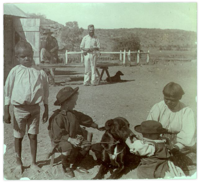 Bradshaw children with Tryphena and Rimgie at Alice Springs Telegraph Station, c 1900 [SLSA 20987]