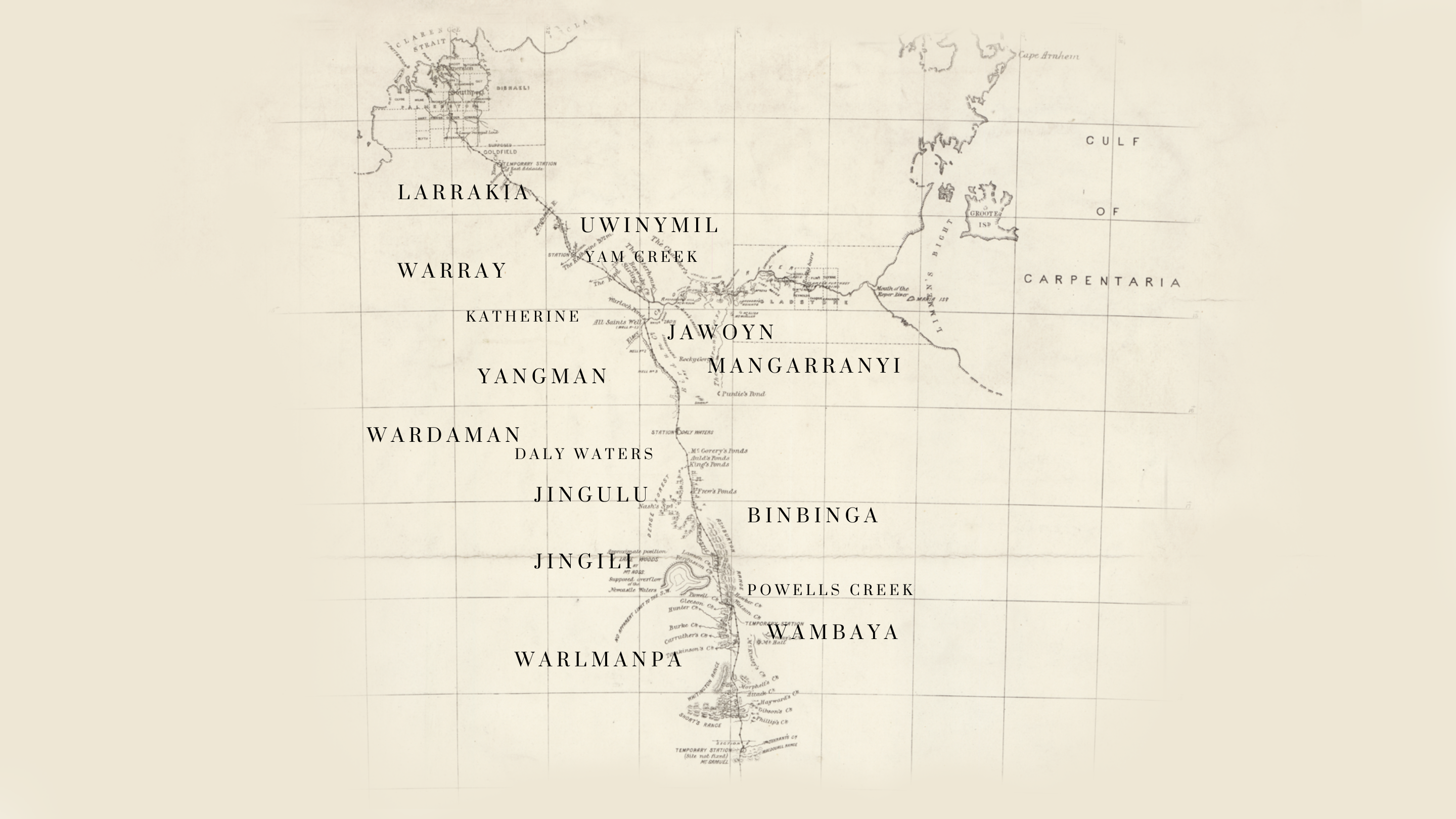 The southern section of the Overhead Telegraph Line followed the pastoral corridor north, expanding the existing path of colonial occupation. As the construction parties moved along the Line’s planned route, they crossed the boundaries of country occupied, managed and intimately known by Aboriginal people for millennia. Jurisprudence scholar Christine Black writes that Aboriginal people’s rights and responsibilities have always been structured as a relationship between law and country, and country in turn binds people to lawful conduct. Lawful conduct meant negotiating permission to enter another’s country, something rarely undertaken by European parties.