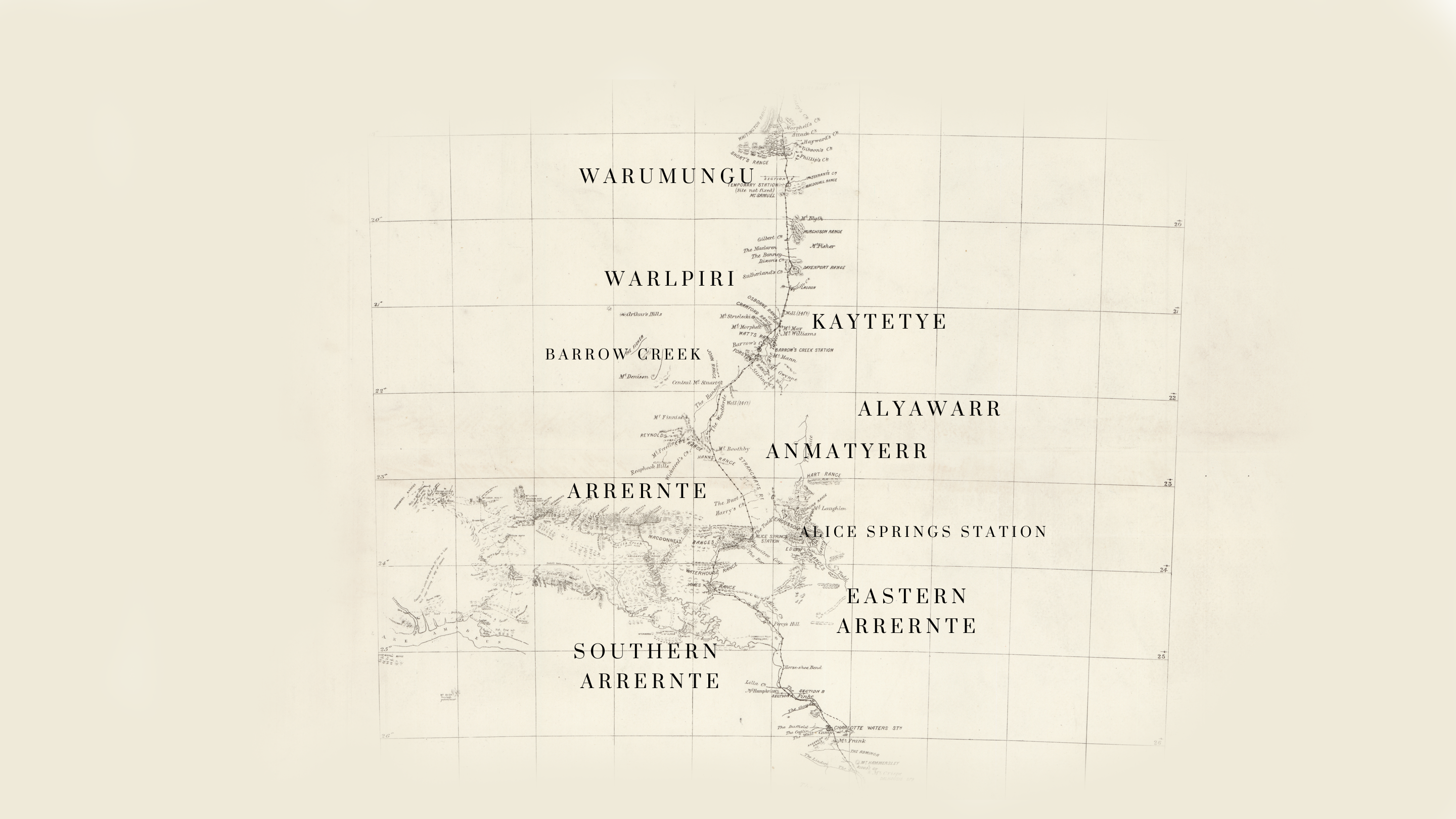 As the first European to enter these areas, Stuart’s meticulous mapping was valuable. However, he was mapping land that had been known and connected to Aboriginal people for tens of thousands of years. After his earliest explorations Stuart used his journal and map as currency in exchange for Arabana Country from the South Australian government. His application emphasised the importance of his maps, and his request for a lease was granted. Arabana people were not consulted as the colonisers parcelled out their land.