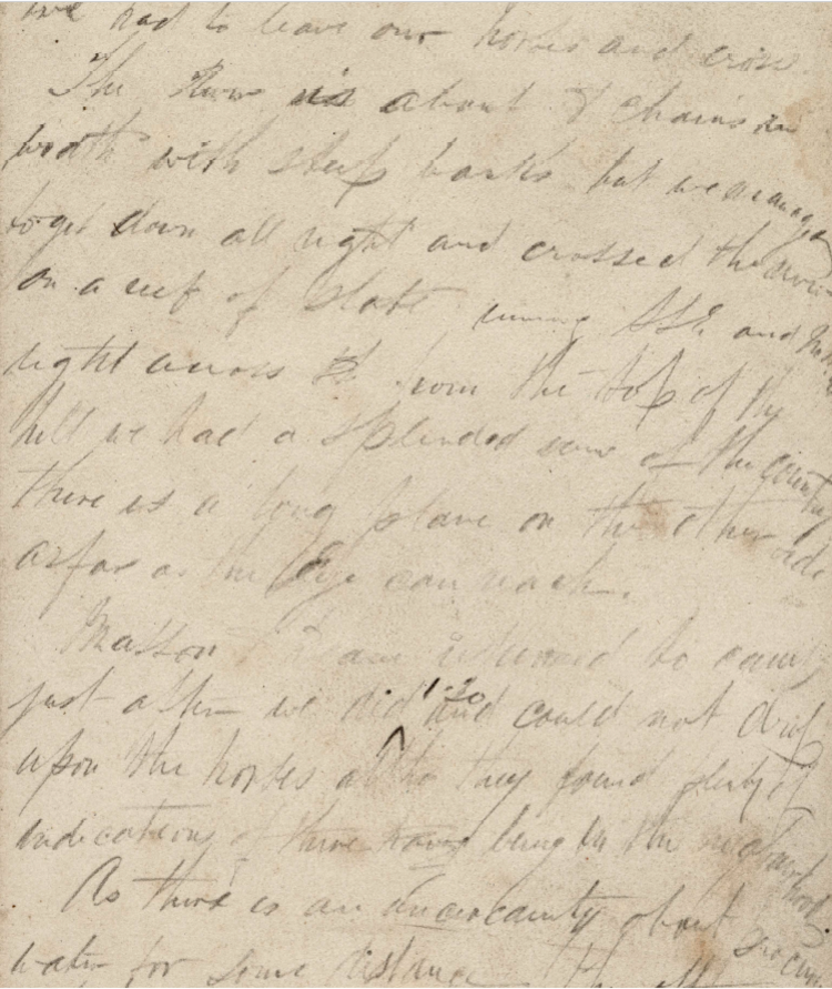 The River is about 8 chains in width with sharp banks but we managed to get down all right and crossed the river … from the top of the hill we had a splendid view of the country there is a long plane [sic] on the other side as far as the eye can reach.