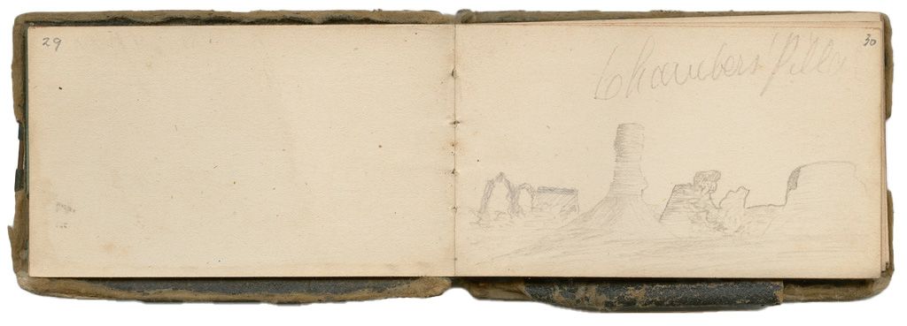 Sketch by Stephen King of Chamber’s Pillar, renamed by Stuart in honour of his expedition sponsors [SLSA PRG 627/276/29]