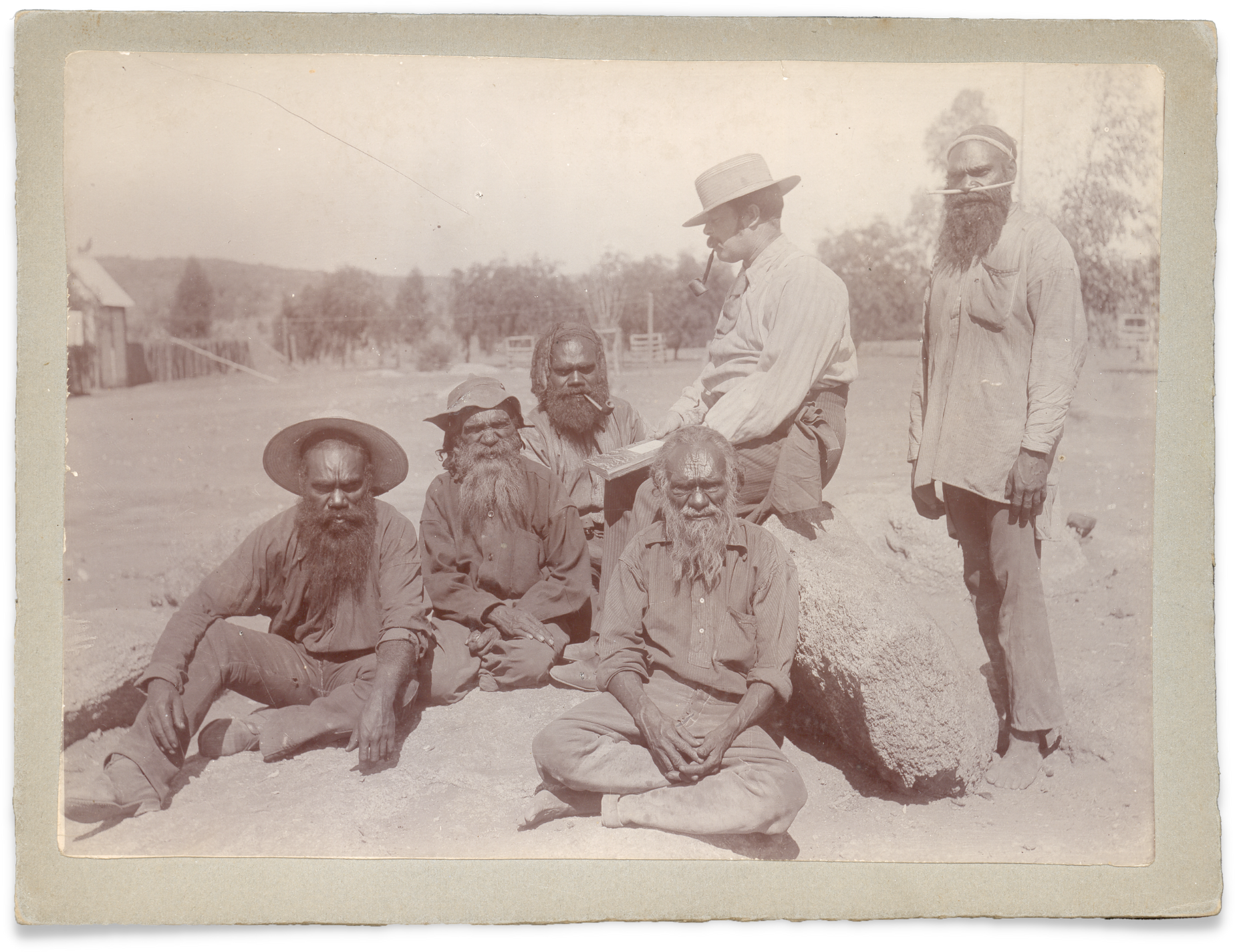 Paul Foelsche became an avid photographer in Port Darwin and made a remarkable series of individual named portraits of Larrakia, Iwaidja and Wulna people. His house and studio were close to the telegraph station and it became a destination for Aboriginal people visiting Port Darwin. They were recompensed with tobacco and cloth after sitting for their portraits. The image shown here is Foelsche’s group photograph of Larrakia men, women and children, probably taken in about 1880. [SAM AA96]