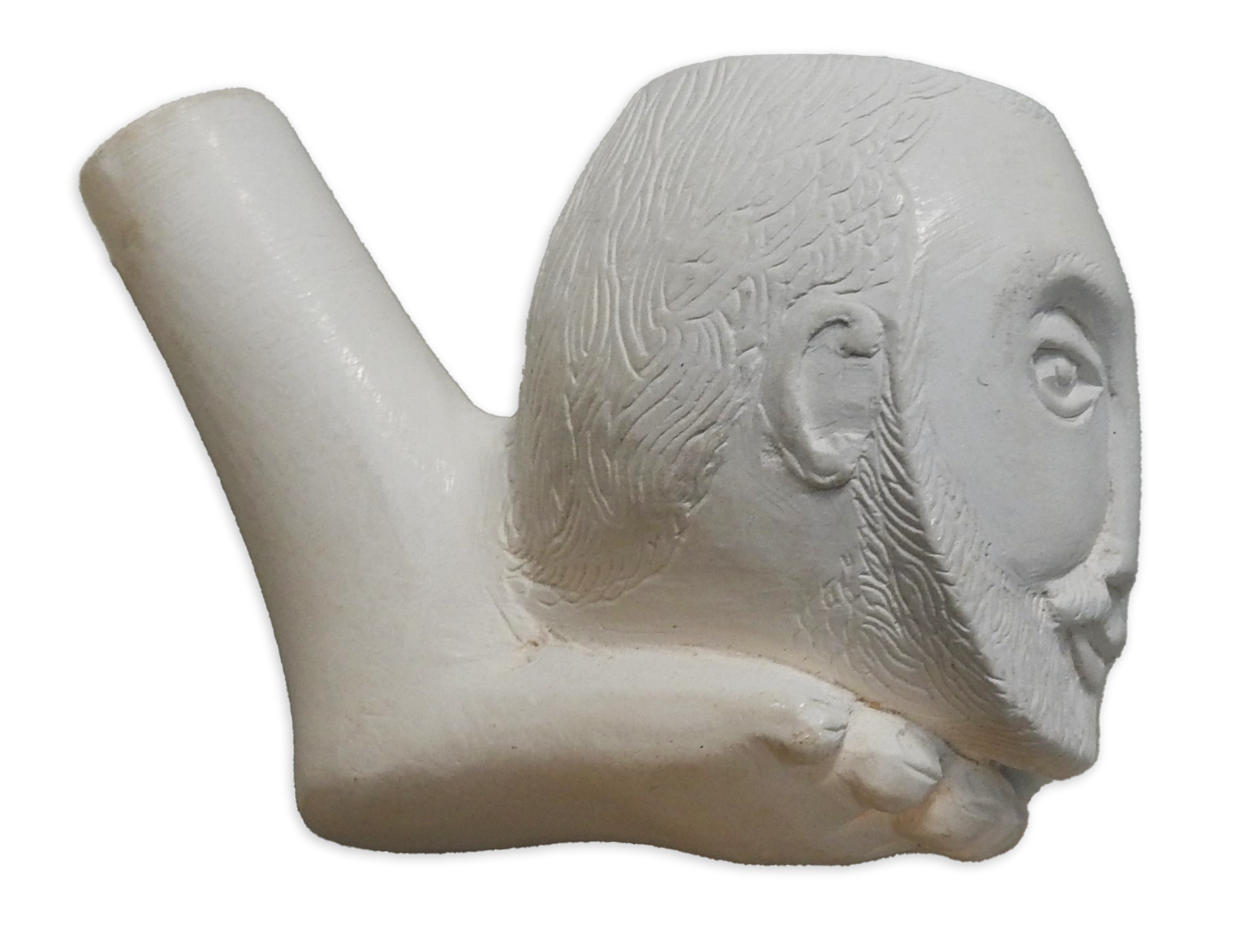 Pipe bowl carved in likeness of a bearded man and foot, by Jim Kite Erliakilyika, ca.1910. [SAM, Recent acquisition]