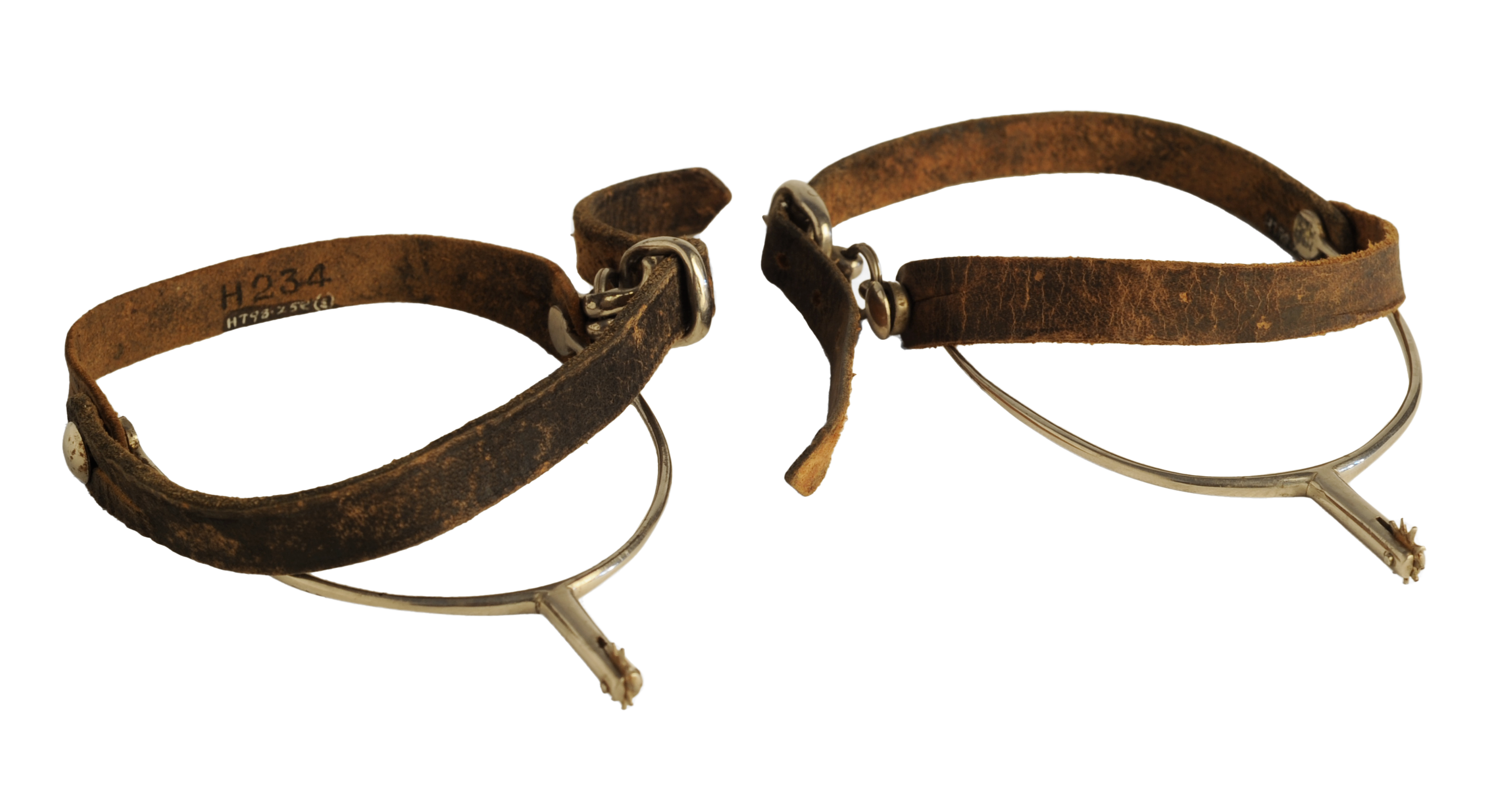 Stuart’s horses could clear a well of water, so their presence was dangerous where water was sacred and scarce. Spurs and leathers [HTSA 1998.0025]