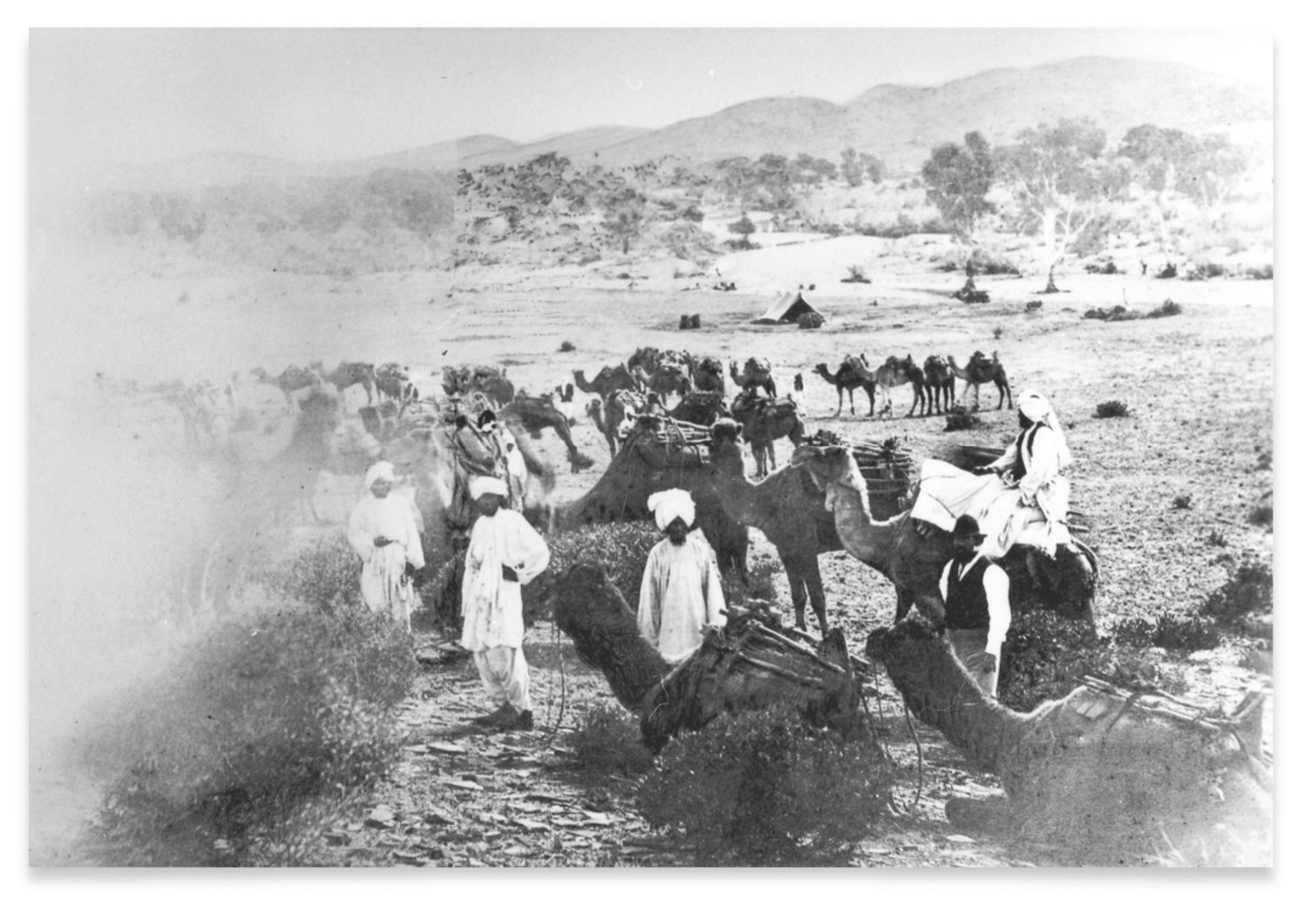 Many of the cameleers contracted from what is now Afghanistan, Pakistan and northwest India returned to their homelands when their indenture contracts expired. But others remained, married Aboriginal or European wives, and built permanent livelihoods in the townships that developed around the telegraph stations and railheads. The cameleers established Australia’s first mosques and the foundations of Australia’s early Muslim communities.