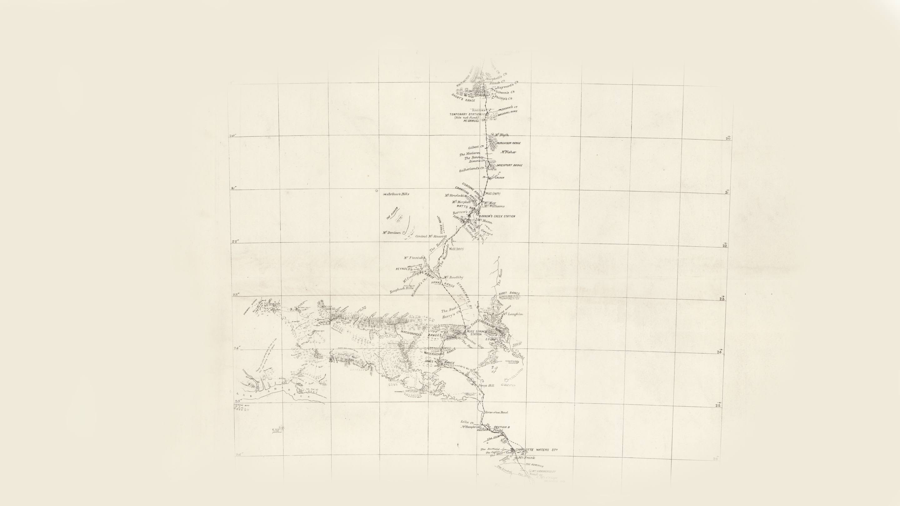The Overland Telegraph Line followed the route taken by the explorer John McDouall Stuart, who between 1860 and 1862 led a series of expeditions that mapped and claimed a strip of country between the colonial outposts of Port Augusta and Port Darwin. Prior to these expeditions Stuart surveyed land leading north of Adelaide identifying places of interest. While making the return from the north represented the success of his endeavours, Stuart’s journey towards this success was an integral part of colonising Aboriginal Lands. His journals provide an insight into his intentions and his interactions. The sketches of Stephen King and account of George Waterhouse provide additional perspectives on the final journey of Stuart and his party.