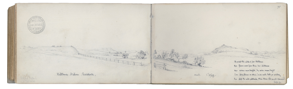 B. Herschel Babbage, sketch of the Overland Telegraph Line route, Beltana Station paddock and trig, c. 1871 [SLSA PRG 404/19/3/71]