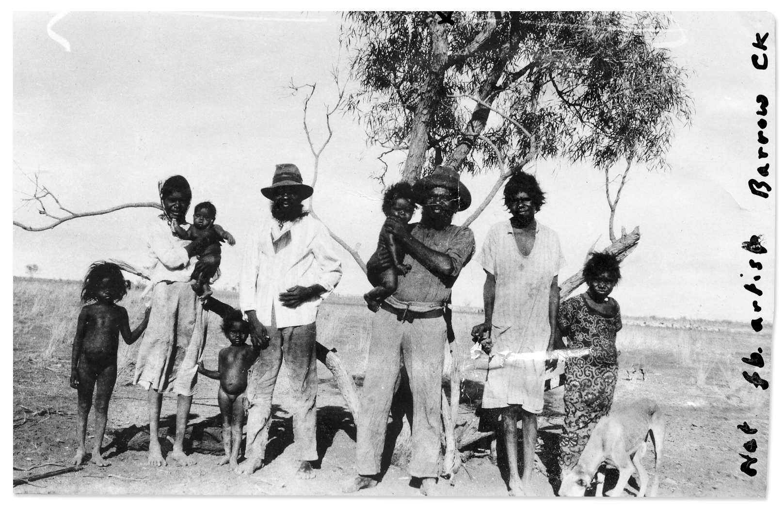 Nat Warano Williams (centre) with his family at Barrow Creek, 1920s. [SAM AA184-3-1002]